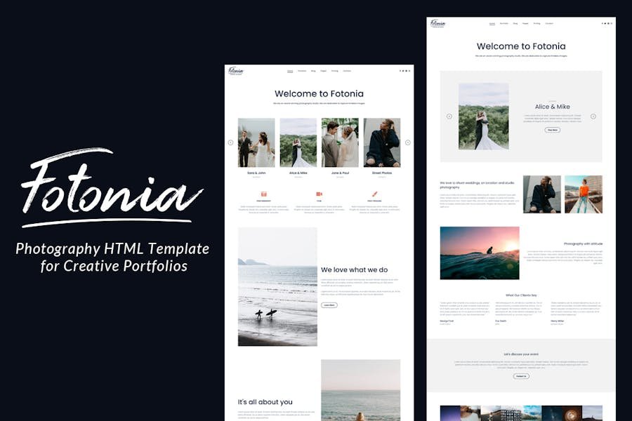 Fotonia is a creative photography HTML template with a clean and modern layout. It’s the perfect choice for photographers, designers, artists, freelancers to showcase their portfolios. It comes with 8 different homepages, 7 gallery styles, contact, about, pricing and blog pages. Fotonia has a clean and responsive design ( looks great on all devices – tablets, iPads, iPhones ) and it fits perfectly for any creative portfolio website. Check the live preview!