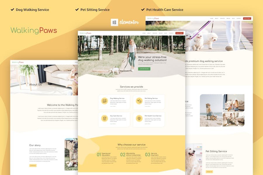 Walking Paws is an Elementor Template Kits build for dog walking and pet care service business. The template is pixel-perfect well designed and makes sure you can create your website without touching a line of code. Especially designed and tailored for pet care services, you will find all the essential features to make your website a success. Features