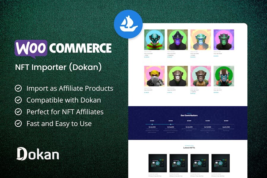 Start an affiliate NFT Marketplace by importing NFTs from OpenSea.io via their API. The NFTs will be imported in WooCommerce and will create affiliate/external products.